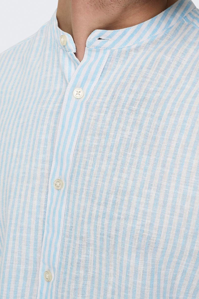 Caiden LS Mao Stripe Linen Shirt Cashmere Blue