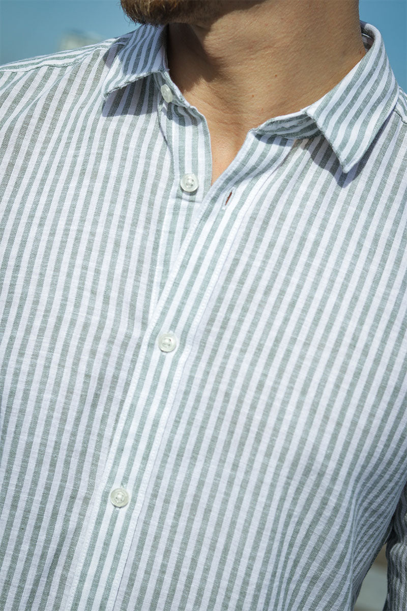 Caiden LS Stripe Linen Shirt Sea Spray