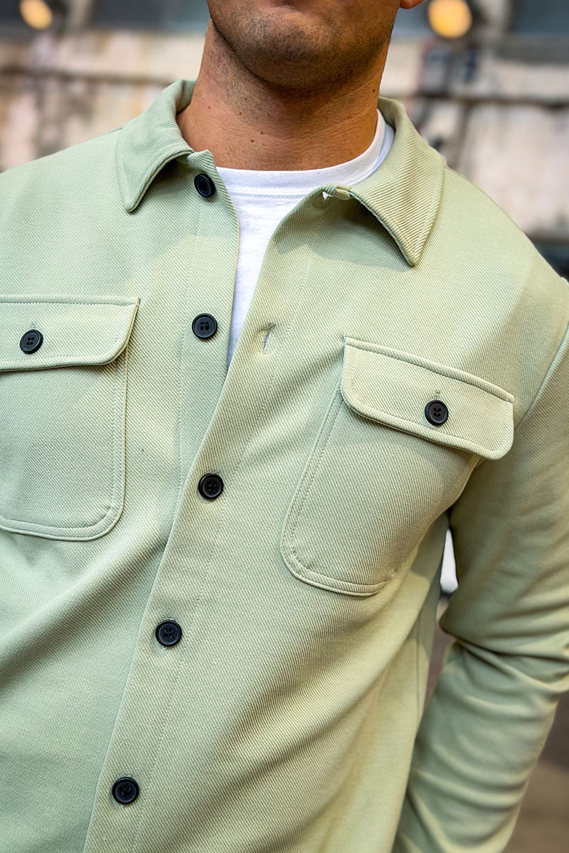 Denna overshirt är gjord i en mjuk och följsam blandning av återvunnen polyester, viskos och elastan, vilket ger en bekväm och hållbar känsla. Med en klassisk skjortkrage och lång ärm är den ett stilrent val för både vardag och mer uppklädda tillfällen. Overshirten har en rak passform som gör att den sitter bekvämt utan att kännas trång, och knäppning framtill tillsammans med bröstfickor med knappar bidrar till dess funktionella design.