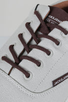 - Kommer med bruna skosnören och en logotyp på utsidan.