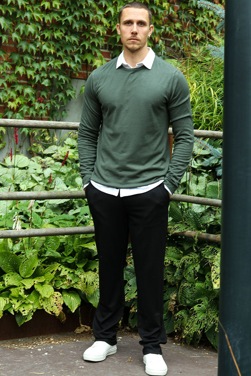 Den här tröjan är designad för vuxna män och kombinerar en bekväm passform med en tidlös Army-färg. Plagget är tillverkat i Kina och tillhör kategorin stickade kläder, vilket gör den idealisk för både vardagsbruk och mer avslappnade tillfällen.