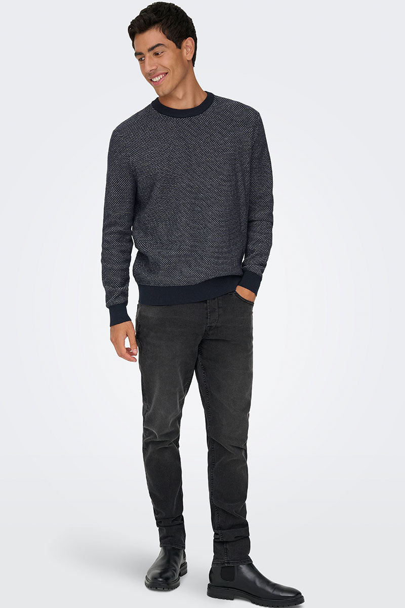 - Mörkblåmönstrad långärmad tröja i normal passform