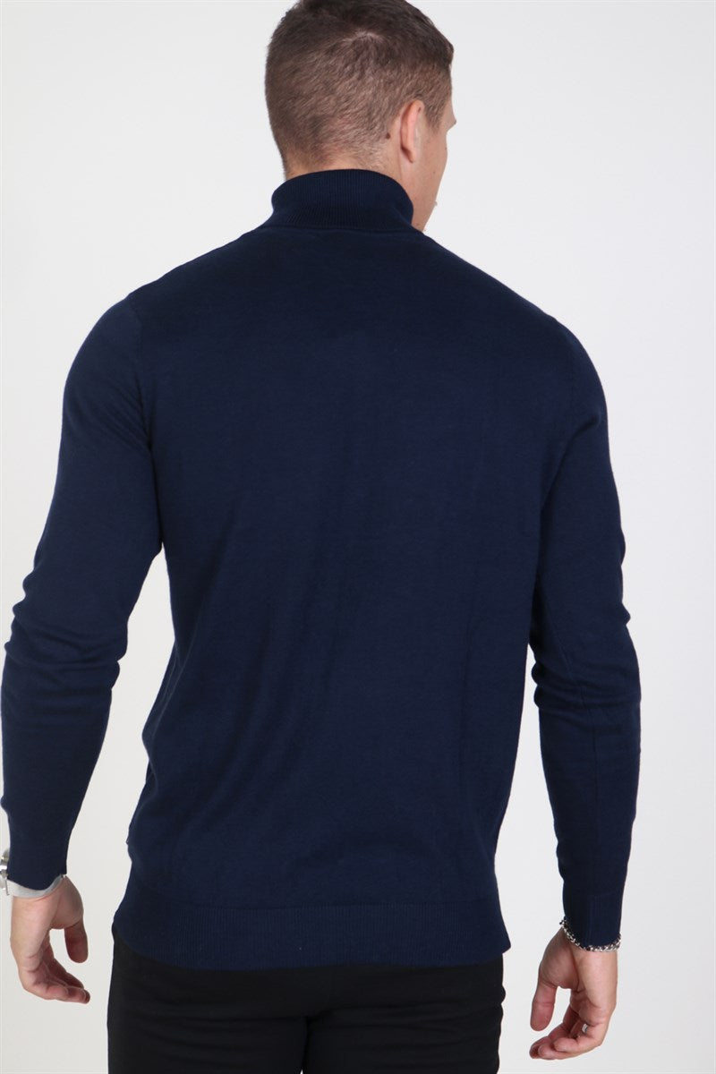 Den här tröjan med polokrage är stickad i ett mjukt och följsamt flatknit-material som ger både komfort och rörelsefrihet. Dess mörkblå nyans passar lätt in i vardagsgarderoben och ger en stilren och tidlös känsla. Tröjan har långa ärmar och en klassisk passform som sitter snyggt och bekvämt.