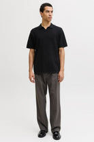 Jerry Knit Split Neck Polo SS Black