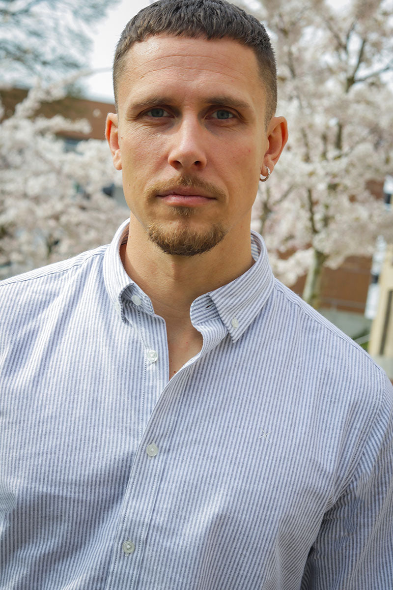 Oxford Stretch Stripe L/S Navy Striped