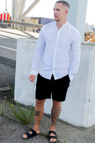 ONSCAIDEN LS SOLID LINEN MAO SHIRT NOOS White