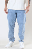 | Storlek | Midja i tum | Midja (cm) | Höft (cm) | Innerbenslängd – jeans 32" (cm) | Innerbenslängd – joggingbyxor (cm) |