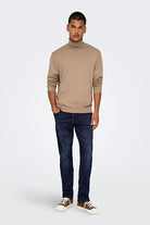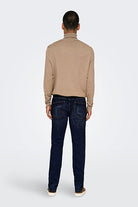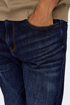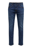 - Mörkblå jeans med dragkedjestängning i slim fit