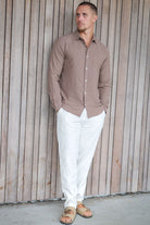 - Skjortan har en klassisk design med en traditionell krage och långa ärmar som kan rullas upp om så önskas