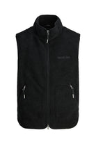 - Västen har hög hals samt dragkedja framtill och vid fickorna