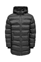 - Lång pufferjacka med hög krage