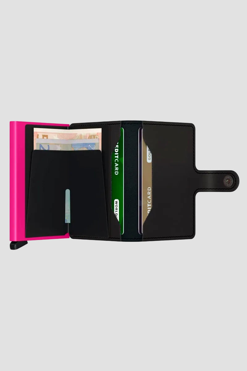 - Korthållaren kan rymma upp till fem kort som enkelt kan skjutas upp och tas ut. Det finns även plats för fyra extra kort, sedlar och kvitton.