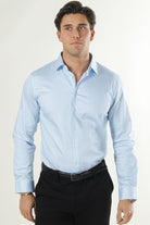 Performance Stretch LS Shirt Light Blue Mixed White