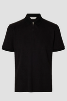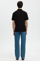 Denna pikétröja har en regular passform med korta ärmar och en klassisk polokrage som ger en stilren och tidlös look. Den är framtagen i en mjuk och stretchig blandning av återvunnen polyester, ekologisk bomull och elastan, vilket ger både komfort och rörelsefrihet under dagen. Den svarta färgen ger ett mångsidigt plagg som passar väl till många olika stilar och tillfällen.