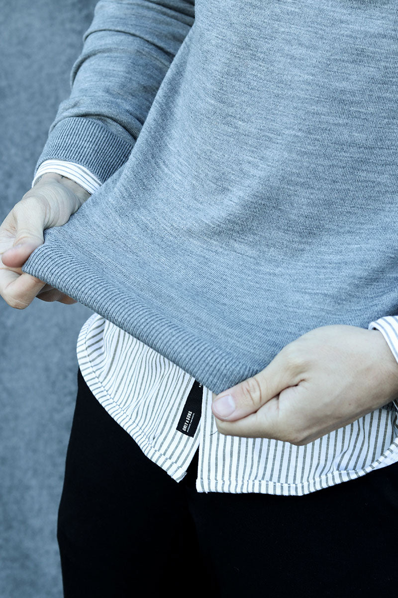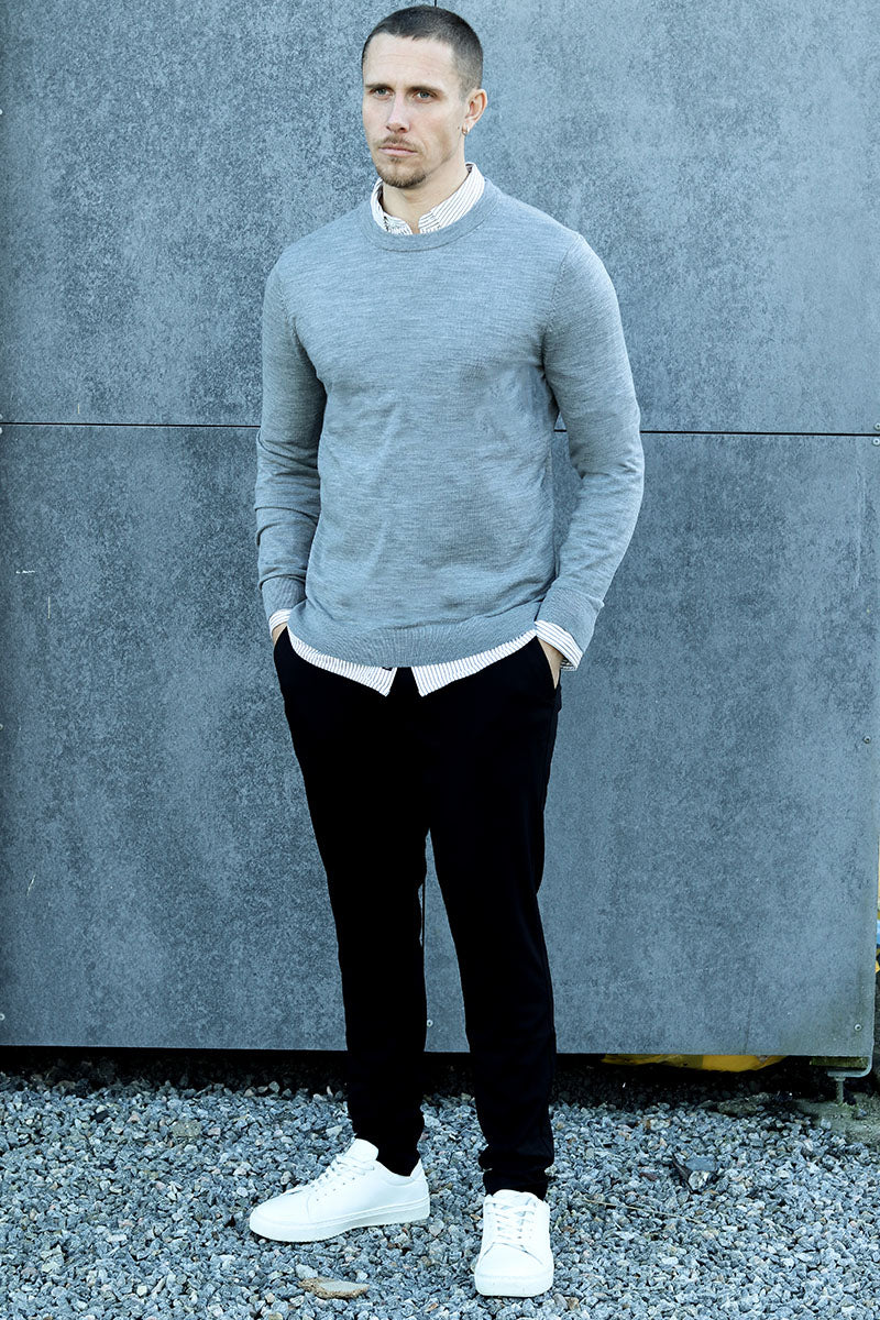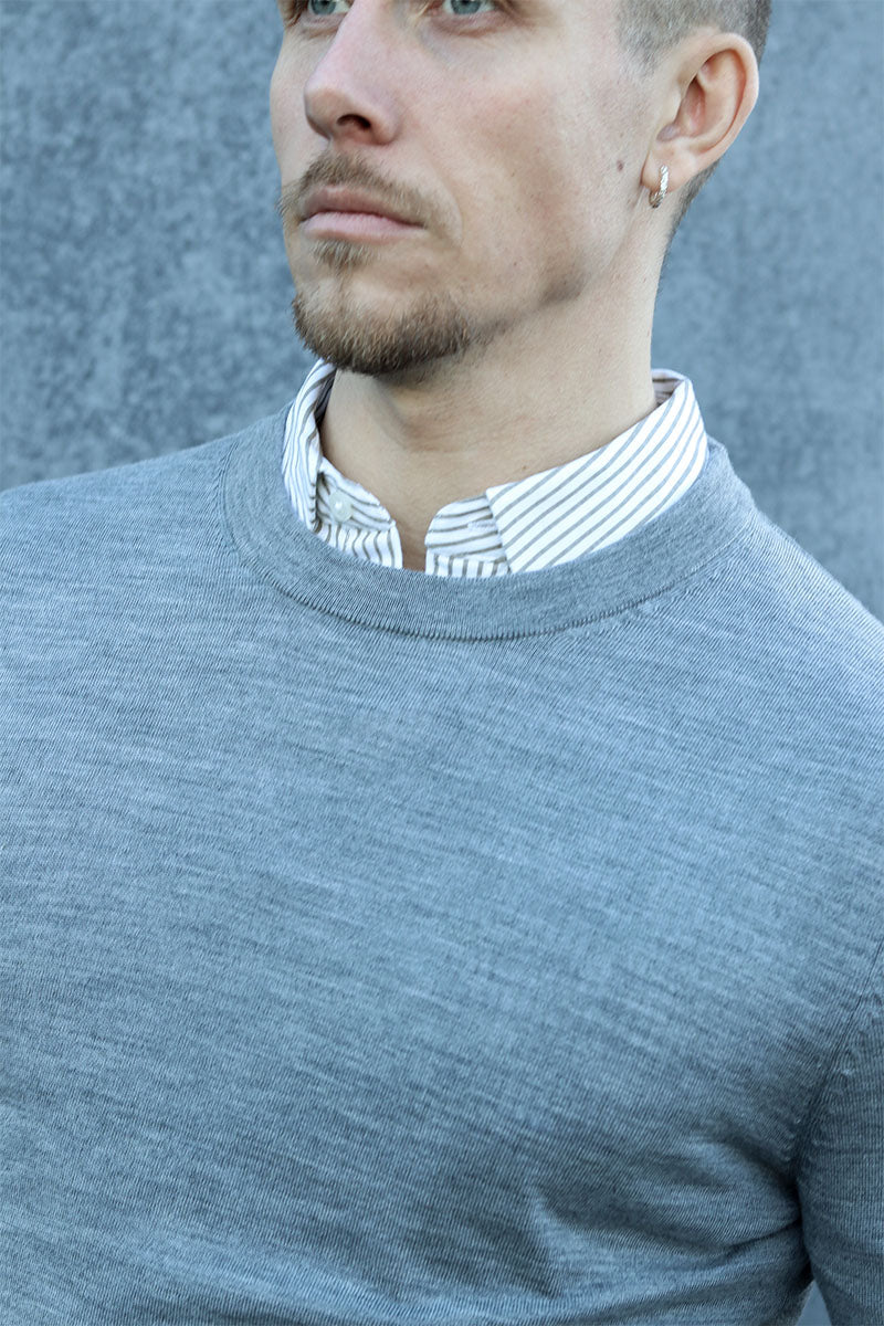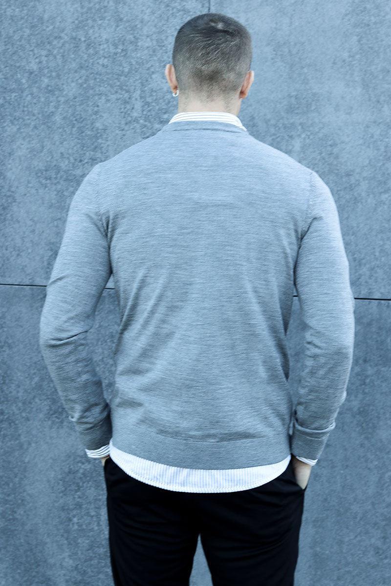 Tray LS Merino Knit Crew Neck Medium Grey Melange