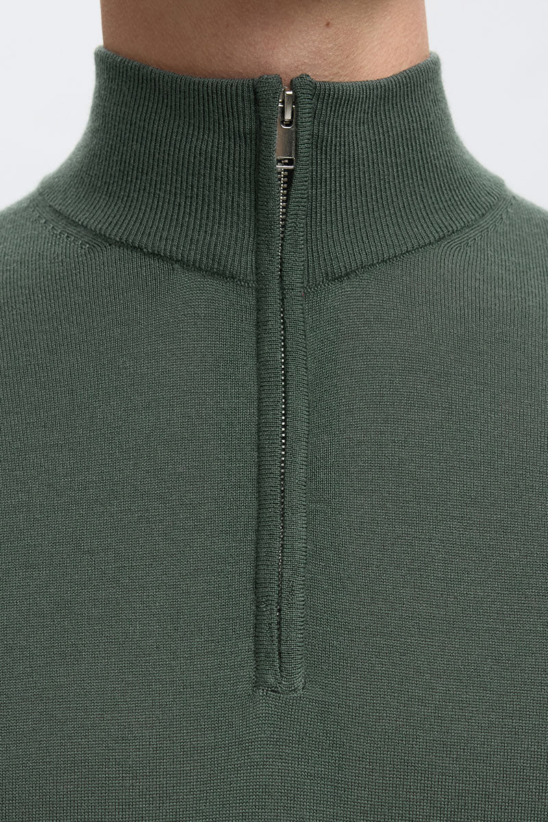 Tray LS Merino Knit Half Zip Deep Forest