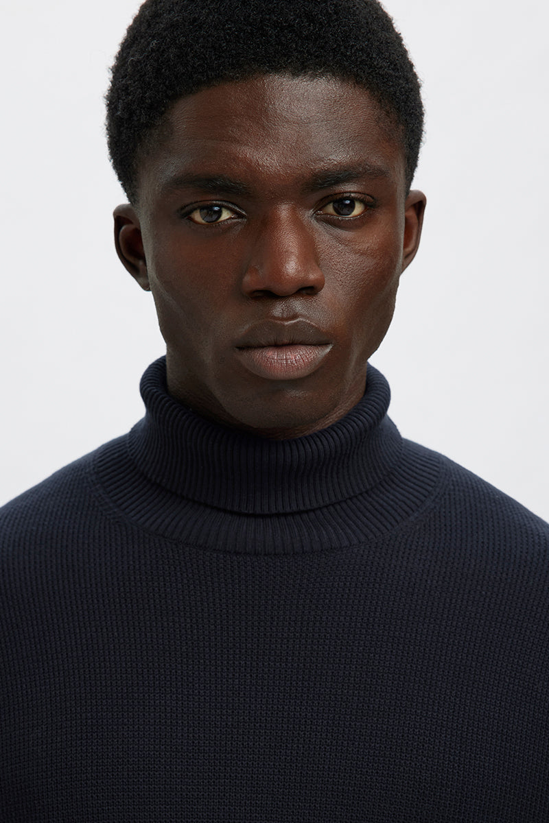 Dane LS Structure Knit Roll Neck Sky Captain
