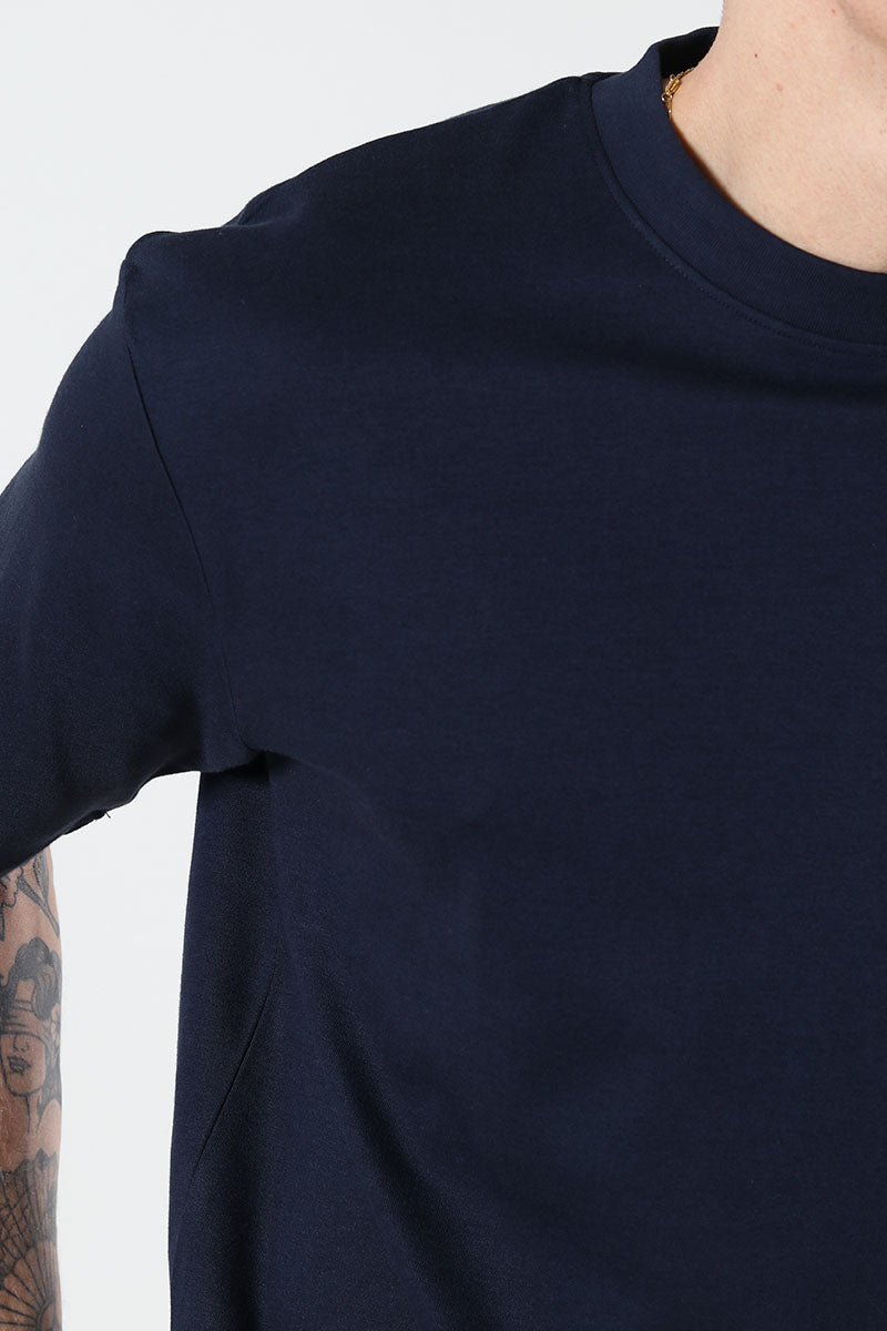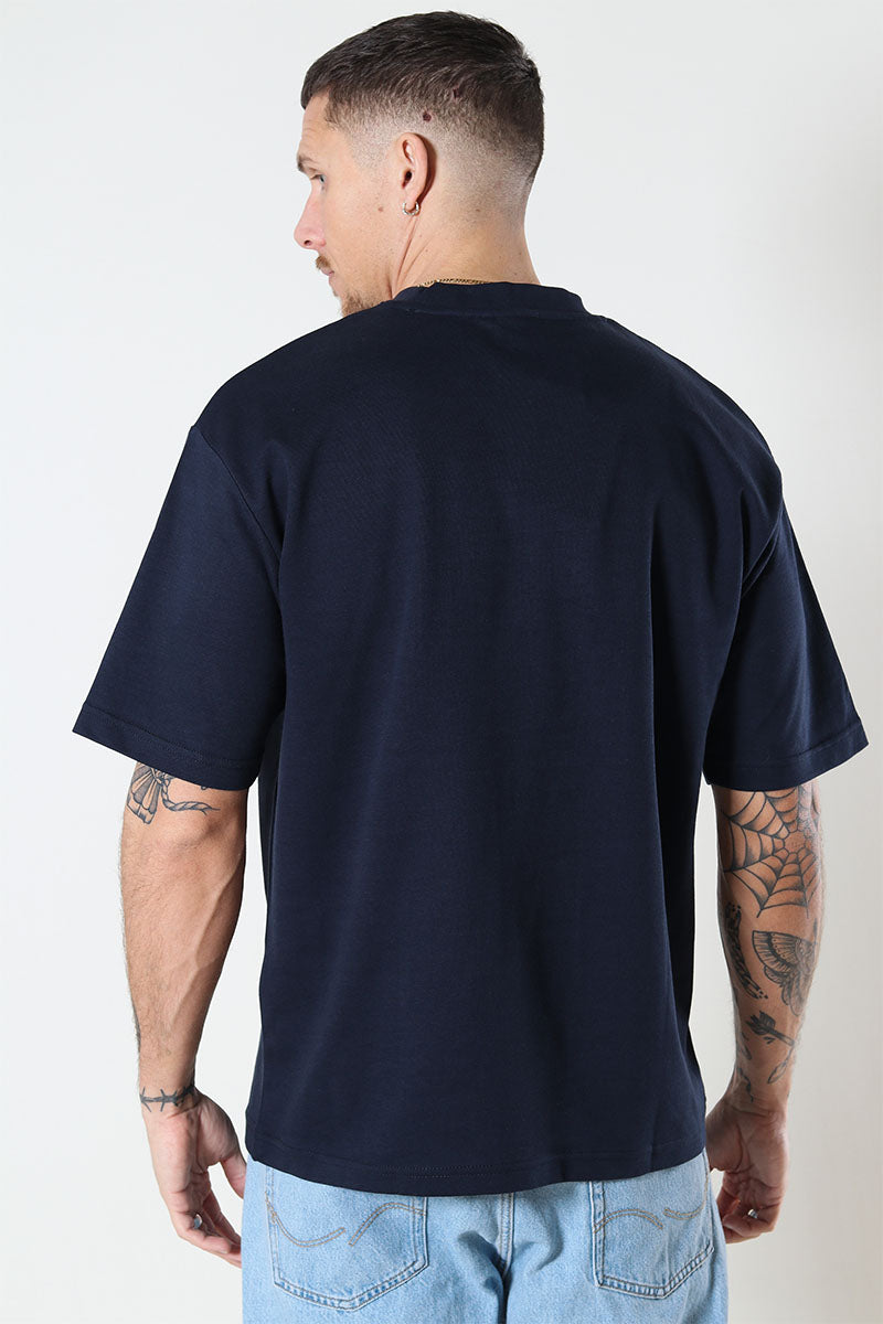 Den tidlösa T-shirten är ett grundläggande plagg i din vardagsgarderob. Den har en lös passform med korta ärmar och en rund halsringning, vilket ger en avslappnad och bekväm känsla hela dagen. Färgen "Sky Captain" är en djup, mörkblå nyans som passar bra med många olika stilar.