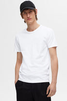 Den tidlösa t-shirten är en oumbärlig del av vardagsgarderoben. Den har en klassisk rund hals och korta ärmar, vilket gör den lätt att matcha till olika stilar. T-shirten är tillverkad i en mjuk och följsam blandning av 95% ekologisk bomull och 5% elastan, vilket ger både komfort och en perfekt passform med sin regular fit. En enzymbehandling ger plagget en subtil blekning och en mjukare känsla mot huden.