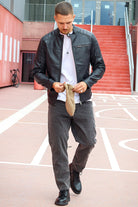 Denna bikerjacka kombinerar en tidlös stil med funktionella detaljer för vardagsbruk. Jackan har en klassisk bikerkrage och långärmade ärmar, med en genomgående dragkedja som stänger plagget tryggt. Det är en quiltad detalj som ger ett extra lager av både komfort och design. Materialet är 100% polyester med en polyuretanbeläggning, vilket ger en tålig yta som samtidigt känns bekväm.