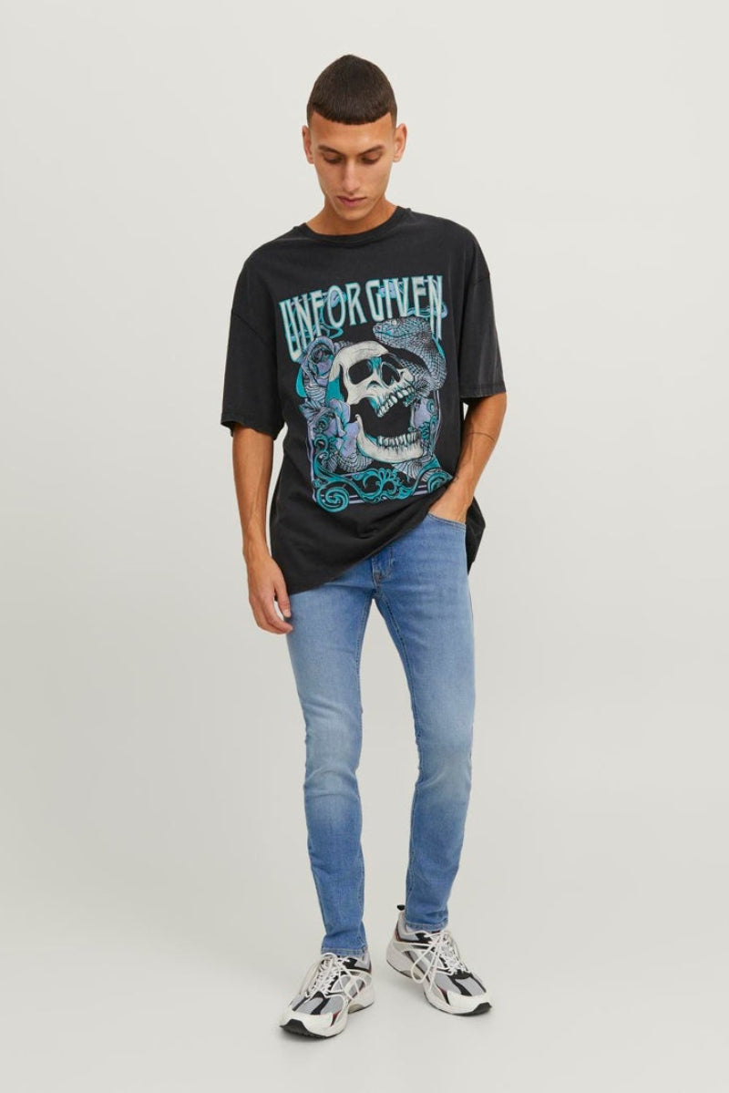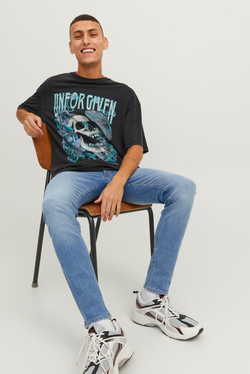 Dessa skinny fit-jeans med låg midja är designade för unga män och kombinerar klassiska femficksdetaljer med en modern passform som sitter tätt runt lår, knän och anklar. Modellen är utrustad med dragkedjegylf som ger ett klassiskt jeansuttryck. Färgen Blue Denim skapar en tidlös och avslappnad look som passar många stilar. Denimtyget består av en flexibel blandning med 70 % bomull, 28 % återvunnen polyester och 2 % elastan, vilket säkerställer både rörelsefrihet och komfort hela dagen.