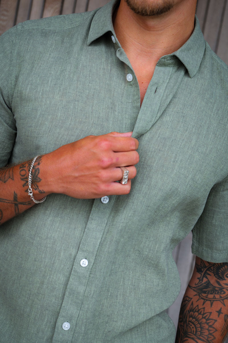 Caiden SS Linen Shirt Swamp