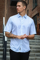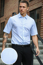 Comfort Shirt i färgen Cashmere Blue Stripe är ett sofistikerat och stilrent tillskott till varje garderob. Den klassiska designen har korta ärmar och en stretchig bekväm passform vilket gör den perfekt för sommarkläder. Skjortan har också en traditionell krage vilket ger en touch av klass till vilken outfit som helst. -