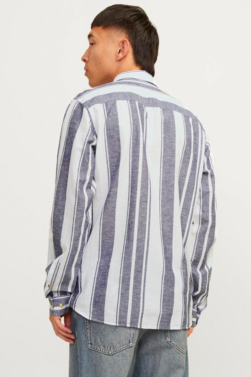 JJESUMMER LINEN BLEND SHIRT LS SN Navy Big Stripe