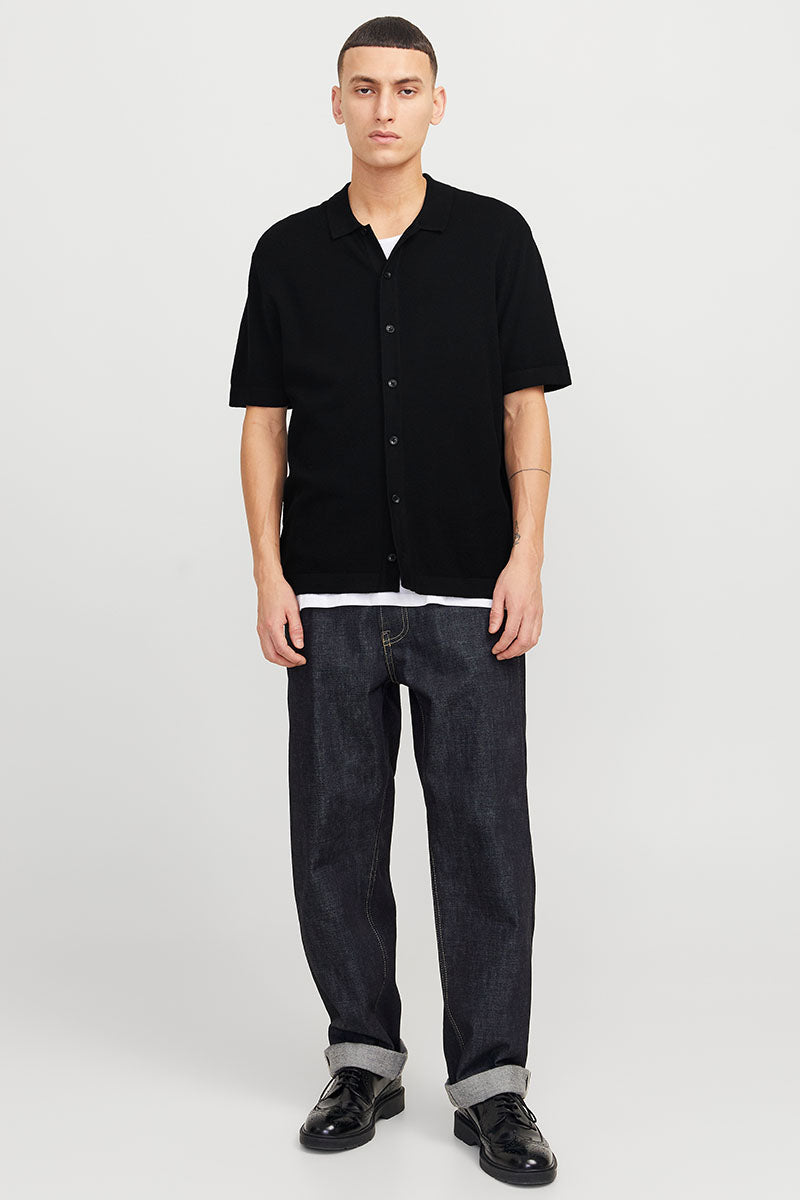 Emil Knit Structure Shirt SS Black