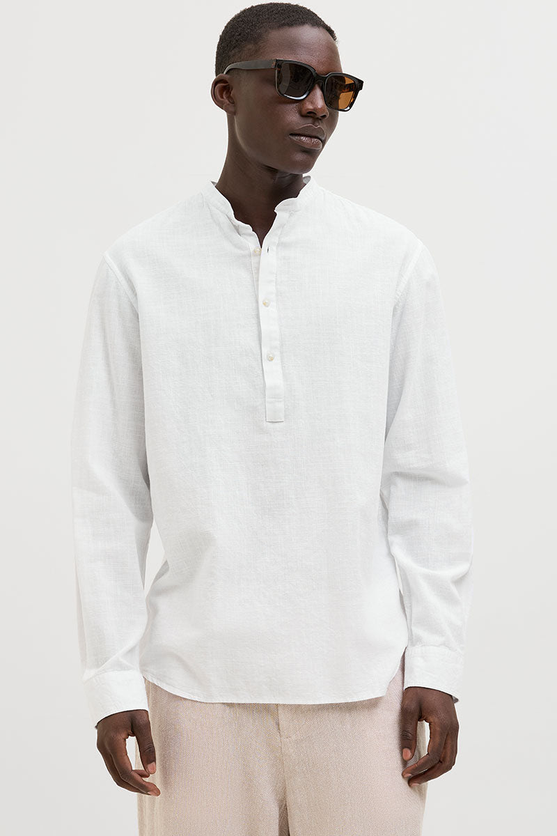 Summer Half Placket Shirt Ls White