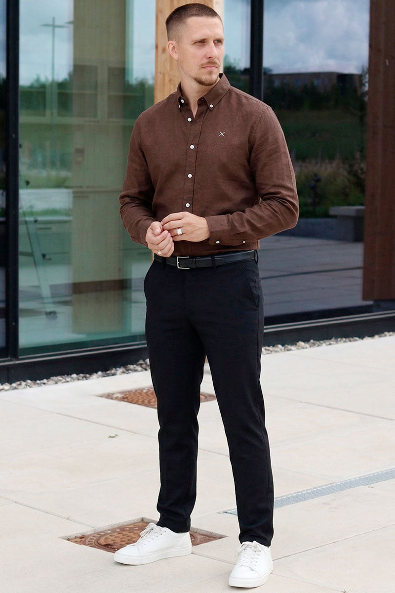 Oxford Stretch Plain L/S Dark Brown Melange