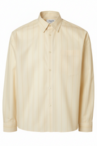 Denna randiga skjorta är gjord i en bekväm boxig passform med lång ärm och klassisk skjortkrage. Den har knäppning framtill och knäppbara manschetter, vilket gör den lätt att anpassa efter stil och tillfälle. Materialmixen, bestående av 62% ekologisk bomull och 38% bomull, bidrar till en mjuk och hållbar känsla. Skjortan passar utmärkt till kontoret, speciella tillfällen eller vardagsbruk tack vare sin höga kvalitet och tidlösa design.