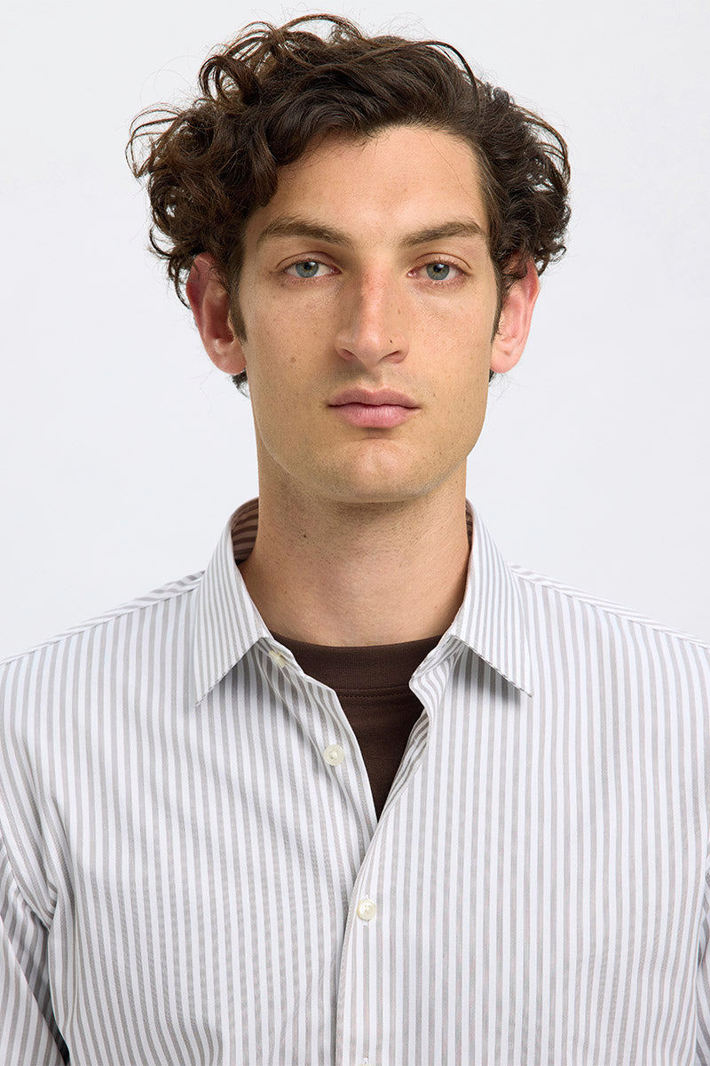 Performance Stretch LS Shirt Bright White Stripes