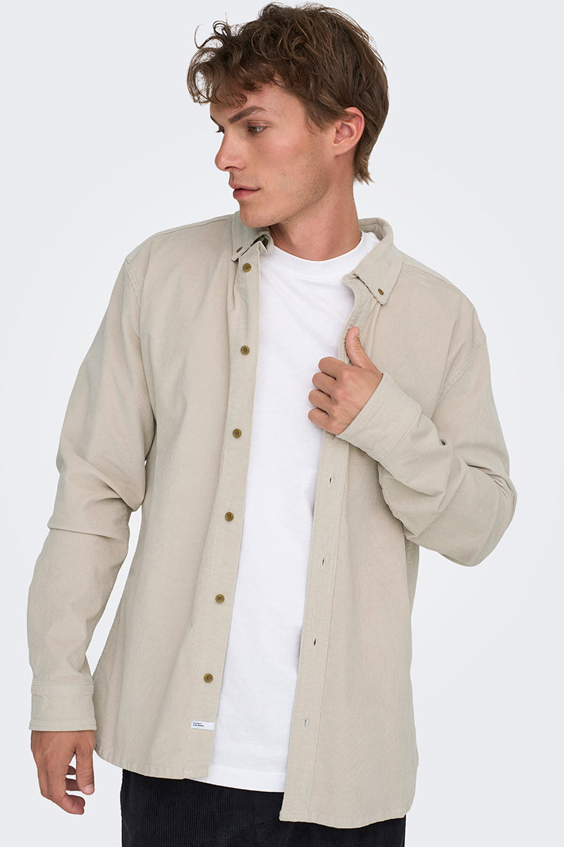 Michael Regular Fit Stretch Cord Shirt LS Silver Lining