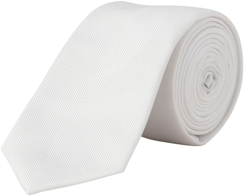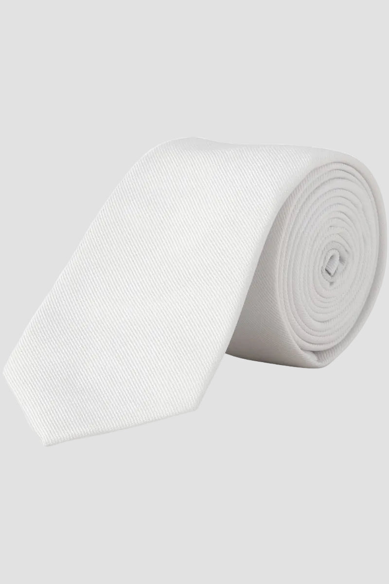 Den här strukturerade slipsen i vitt ger en stilren och tidlös känsla till din formella klädsel. Tillverkad av 100% återvunnen polyester, kombinerar den hållbarhet med klassisk design i ett slitstarkt, vävt tyg som behåller sin form utan att töja sig. Passar perfekt när du vill höja din outfit vid formella tillfällen och skapa ett välklätt intryck.