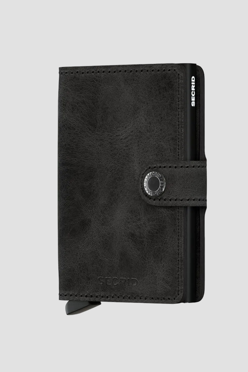 - Korthållaren skyddar mot slitage och RFID‑skanning. Den är tillverkad av aluminium och täckt med svart vintage läder, vilket ger ett exklusivt uttryck.