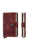 Exklusiv kombinerad korthållare och Plånbok från Secrid. Uppbevaring för fem kort som lätt kan pressas upp. Ytterligare plats för fyra kort, sedlar och kvitton. Skyddar från slitage och RFID skanning. Tillverkad i aluminium och brunt läder i en vintage look. Mått: 10,2 x 6,5 x 2,1 cm. Vikt: 72 g.