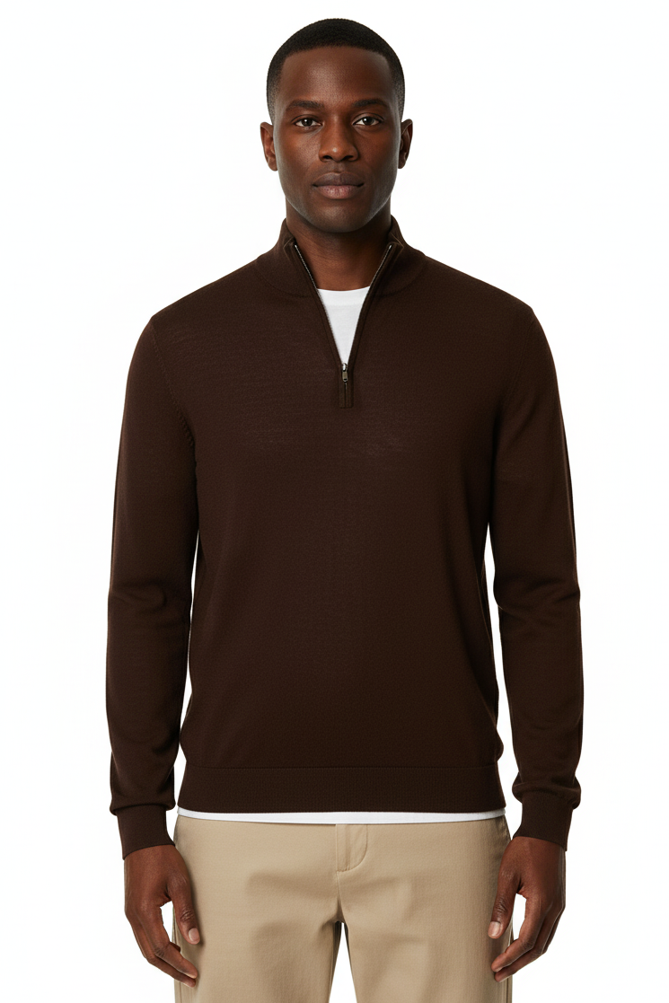 Tray LS Merino Knit Half Zip Demitasse
