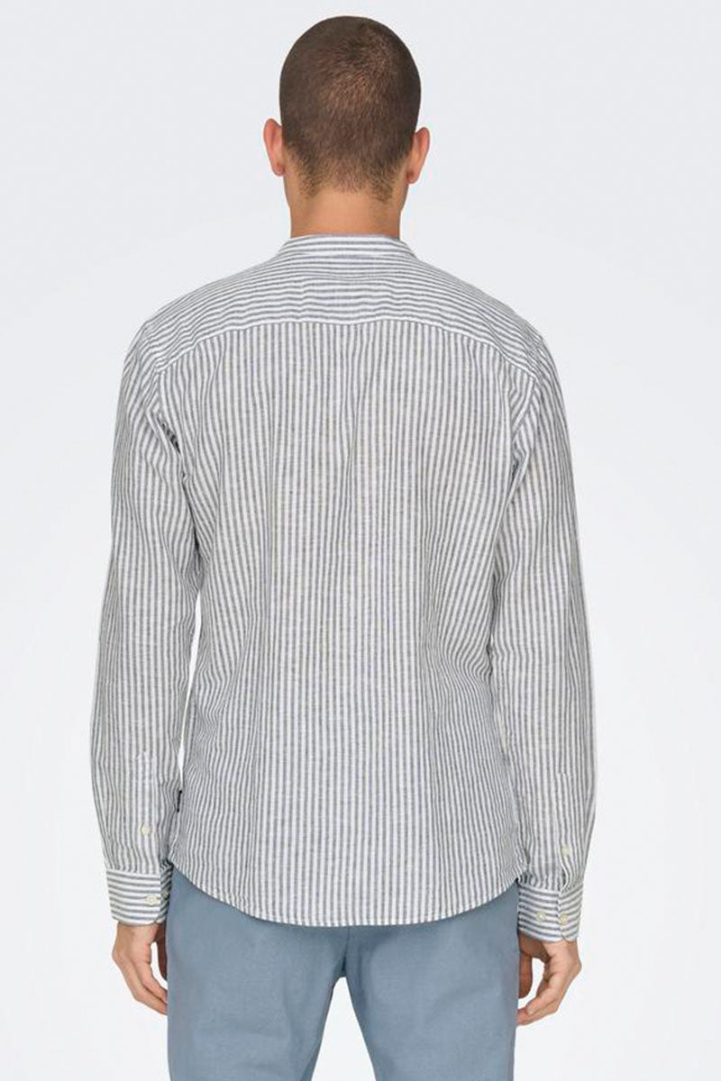 Caiden LS Mao Stripe Linen Shirt Dark Navy