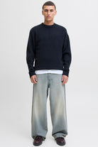 • Mörkblå ärmlång stickad tröja