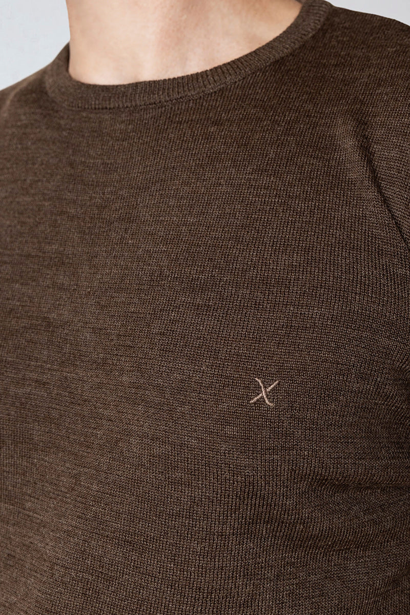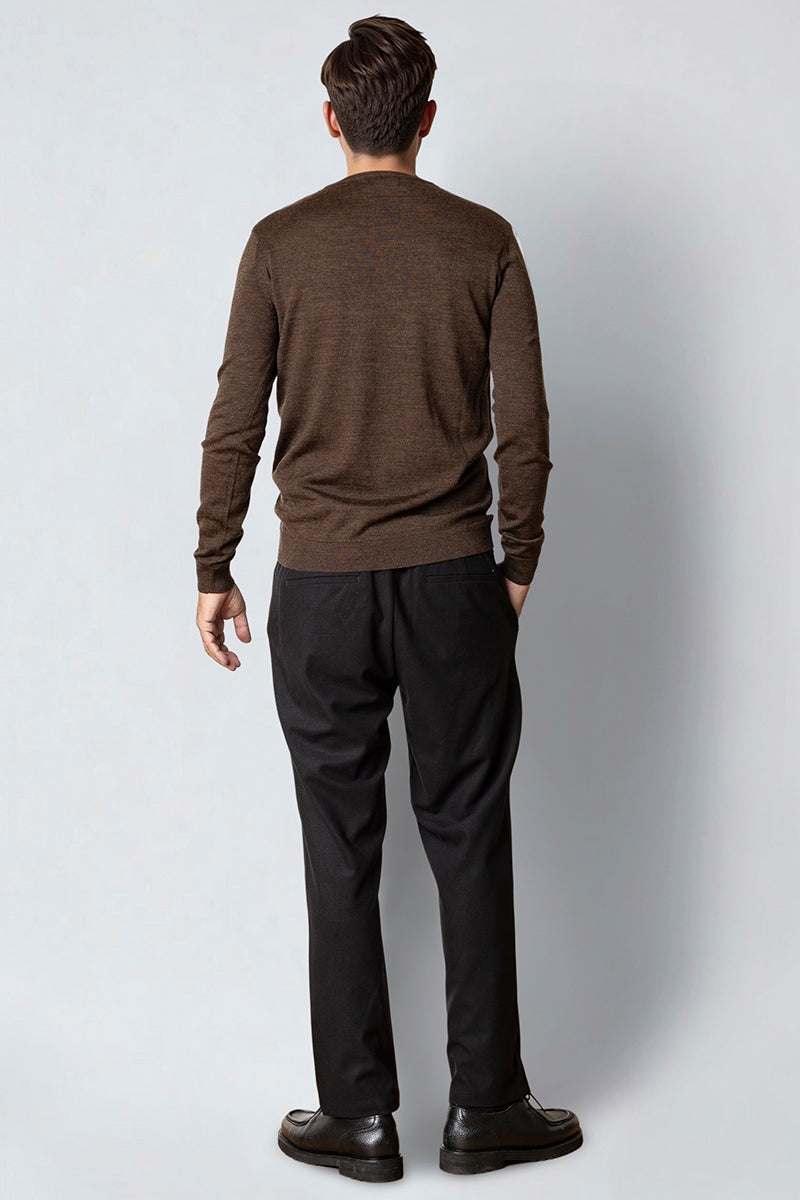 Merino Crew Brown Melangè