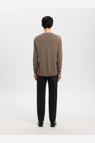 En tidlös och bekväm tröja med rund halsringning som passar perfekt i den vardagliga garderoben. Tröjan har lång ärm och ribbade muddar som ger en behaglig passform. Den är skapad i ett stickat material som består av 50% bomull och 50% ekologisk bomull, vilket bidrar till en mjuk och hållbar kvalitet.