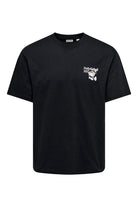 • T‑shirt med stort tryck på ryggen och mindre tryck på bröstet