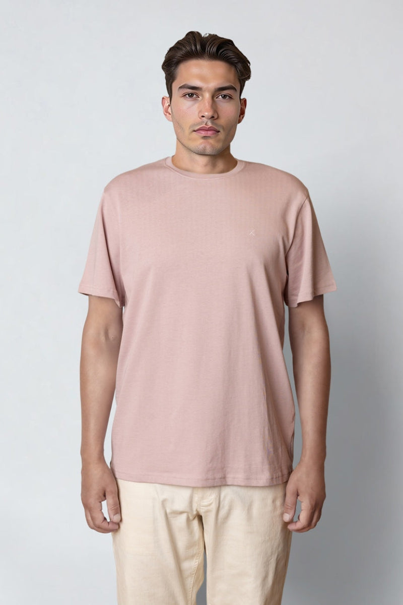 Den stabila t-shirten i färgen Violet Ice är ett utmärkt val för den manliga garderoben under våren och sommaren 2026. Med sin enkla design och behagliga passform passar den bra för vardagsbruk.
