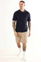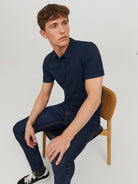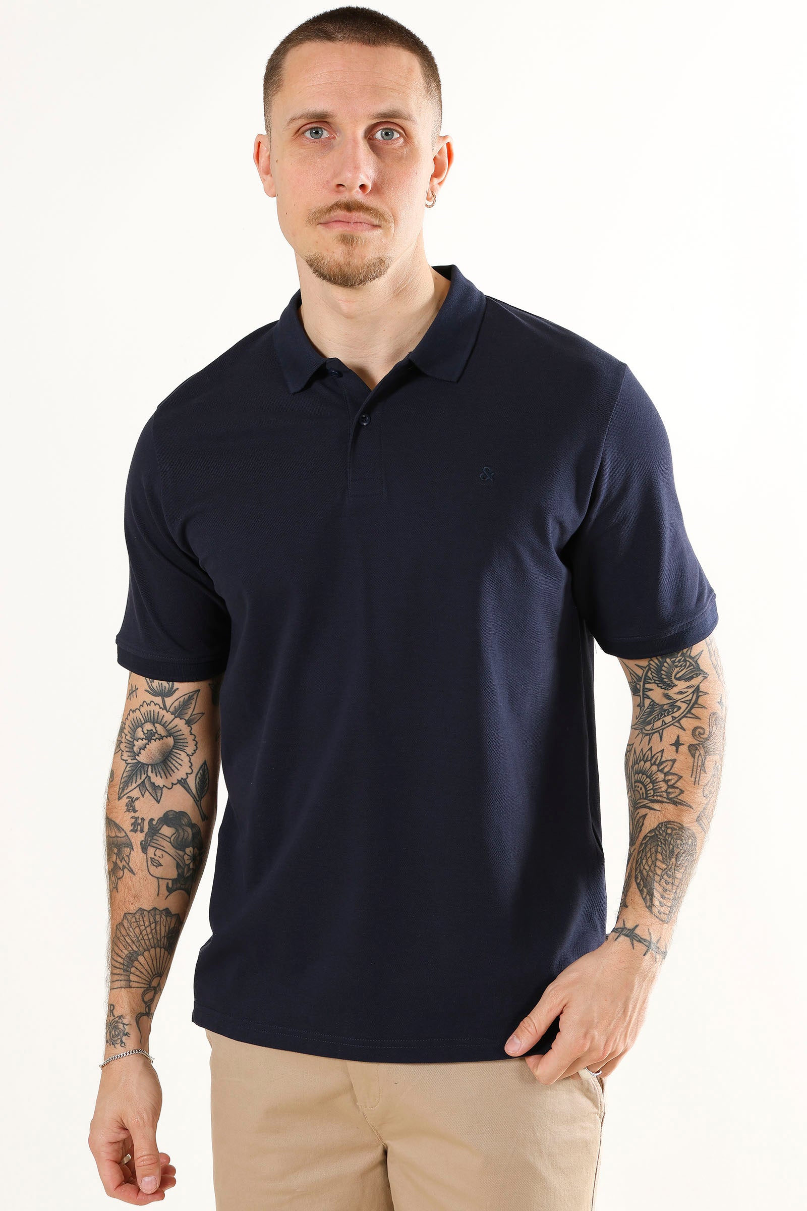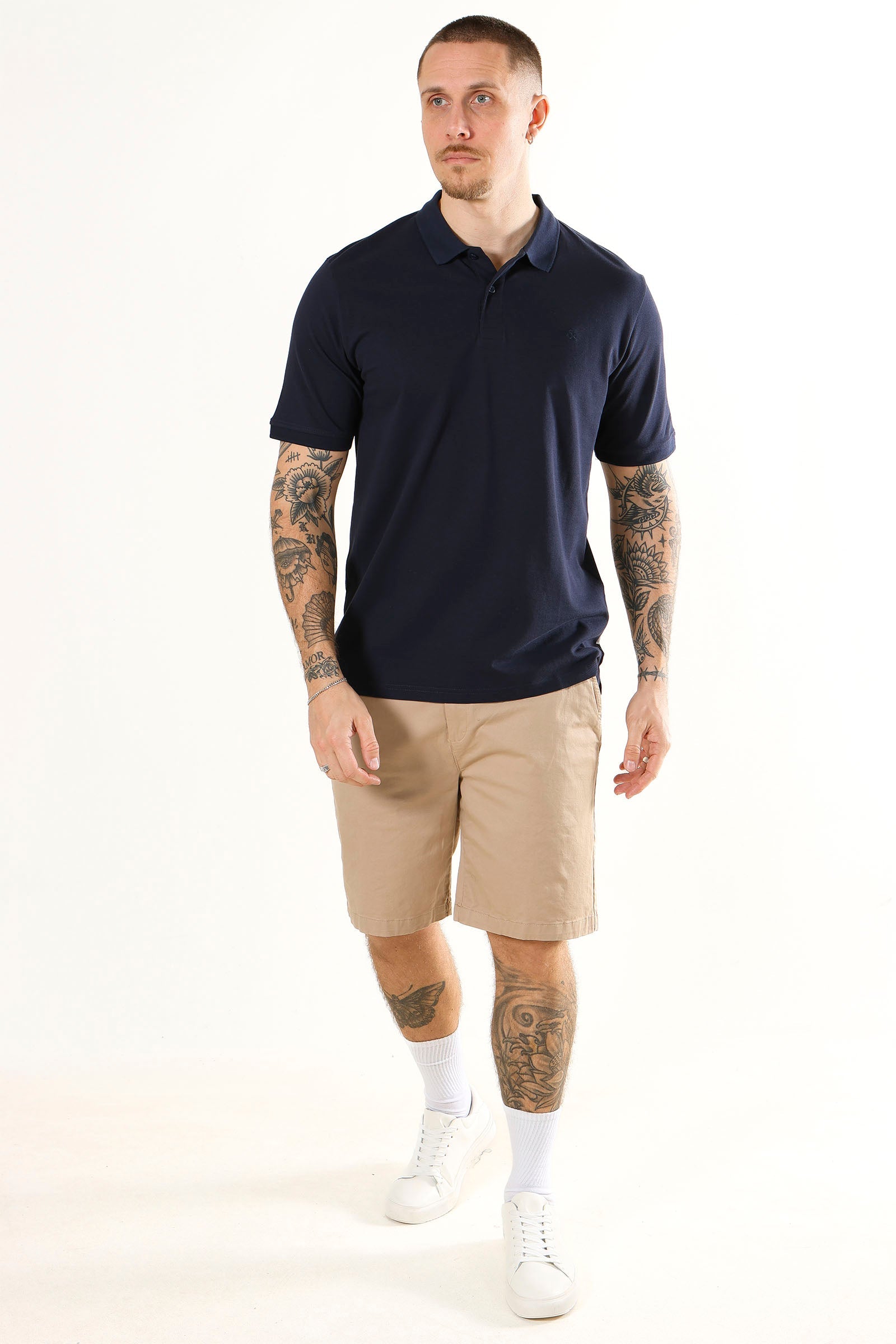 Denna klassiska polo i navy blå färg är tillverkad av 100% ekologisk bomull som både känns bekväm och har en mjuk struktur. Modellen har korta ärmar och en slimmad passform som ger en modern silhuett. Polo-kragen tillsammans med knappstängning fram tillför en tidlös detalj, och det diskreta broderiet ger plagget extra karaktär.