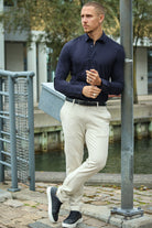 Comfort Shirt i färgen Navy är mångsidig skjorta som kan användas för många olika tillfällen. Den är perfekt för en formell tillställning när den stylas med kostym och slips men kan också användas för mer avslappnade tillfällen när den kombineras med ett par jeans eller chinos. Skjortan är även lätt att anpassa med olika accessoarer som manschettknappar eller ett snyggt skärp.