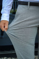 Den grå melange färg är elegant och enkel medan de fina vita kritränderna ger en touch av stil. Materialet har en mjuk och lyxig yta vilket gör Mark Pant till ett bra val för både vardag och speciella tillfällen. -