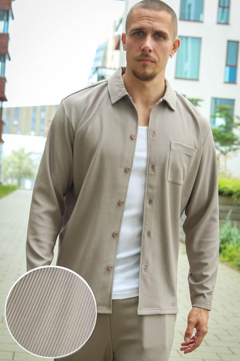 Relax Plisse LS Shirt Greige
