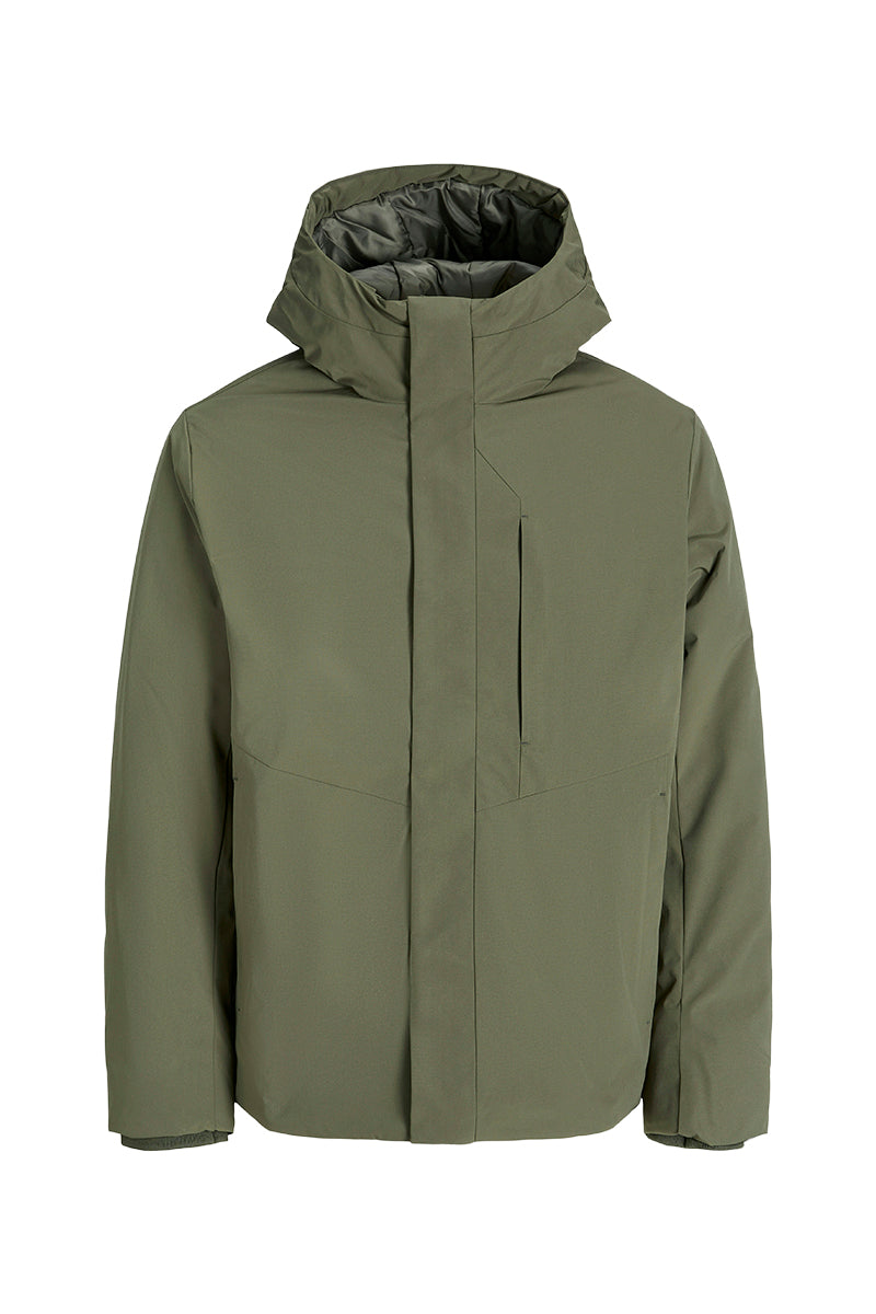 - Ensfärgad parkasjacka med huva