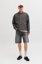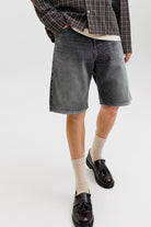 Dessa baggy fit-shorts med hög midja i svart denim är perfekta för en avslappnad vardagsstil. Tillverkade av 80% ekologisk bomull och 20% återvunnen bomull, kombinerar de hållbarhet med komfort. Shortsen är gjorda av slitstark denim, ett kypertvävt tyg, och har knapplucka samt rymliga fickor framtill och bak för praktisk förvaring. Den mjuka finishen gör dem behagliga att bära under vårsäsongen.